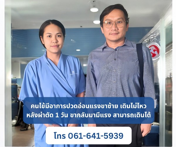 คนไข้มีอาการปวดอ่อนแรงขาซ้าย เดินไม่ไหว เข้ารับการรักษา หลังผ่าตัด 1 วัน ขากลับมามีแรง สามารถเดินได้